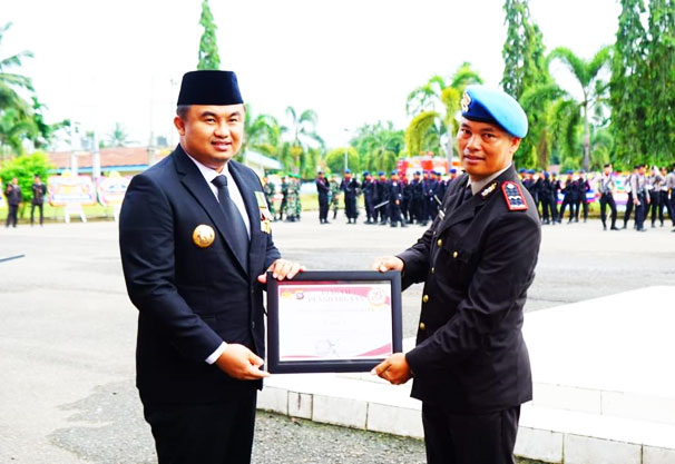Pada kesempatan itu, Bupati Sutan Riska bersama Forkopimda menyerahkan piagam penghargaan kepada Satuan dan Polsek yang berkontribusi dalam memeriahkan HUT Bhayangkara ke-78. Upacara ini dipimpin oleh Kapolres Dharmasraya, AKPB Bagus Ikhwan, sebagai inspektur upacara, dengan Iptu M. Isa bertugas sebagai komandan upacara.