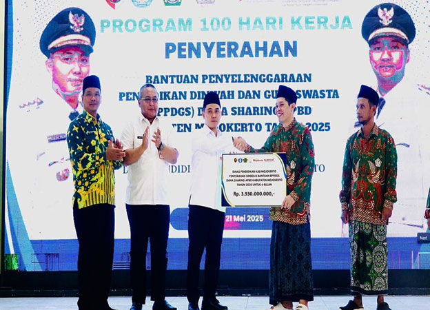 Bupati juga menjelaskan bahwa anggaran Rp 3,9 miliar tersebut bersumber dari kolaborasi antara APBD Provinsi Jawa Timur dan APBD Kabupaten Mojokerto, sebagai bentuk sinergi antarpemerintah dalam mendukung pendidikan diniyah. Ia berharap bantuan ini dapat menekan angka putus sekolah, memperluas akses pendidikan bagi masyarakat, dan mendorong pemerataan kualitas pembelajaran.